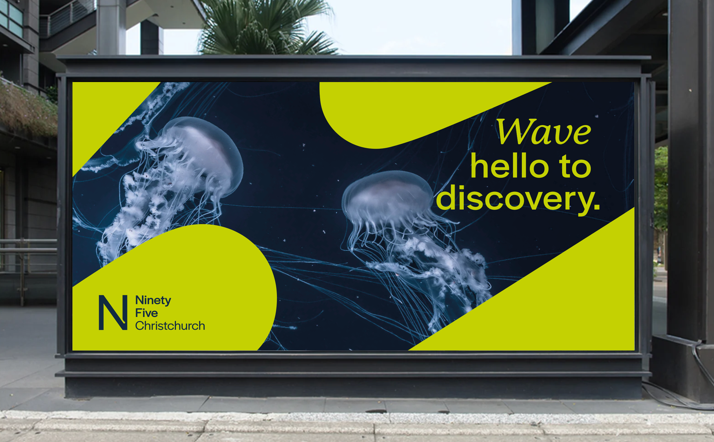 The brand uses two primary colours which heighten the premise of exploring deep underwater. Ninety five also has multiple symbols and secondary colours reflecting the new target audience: young children.