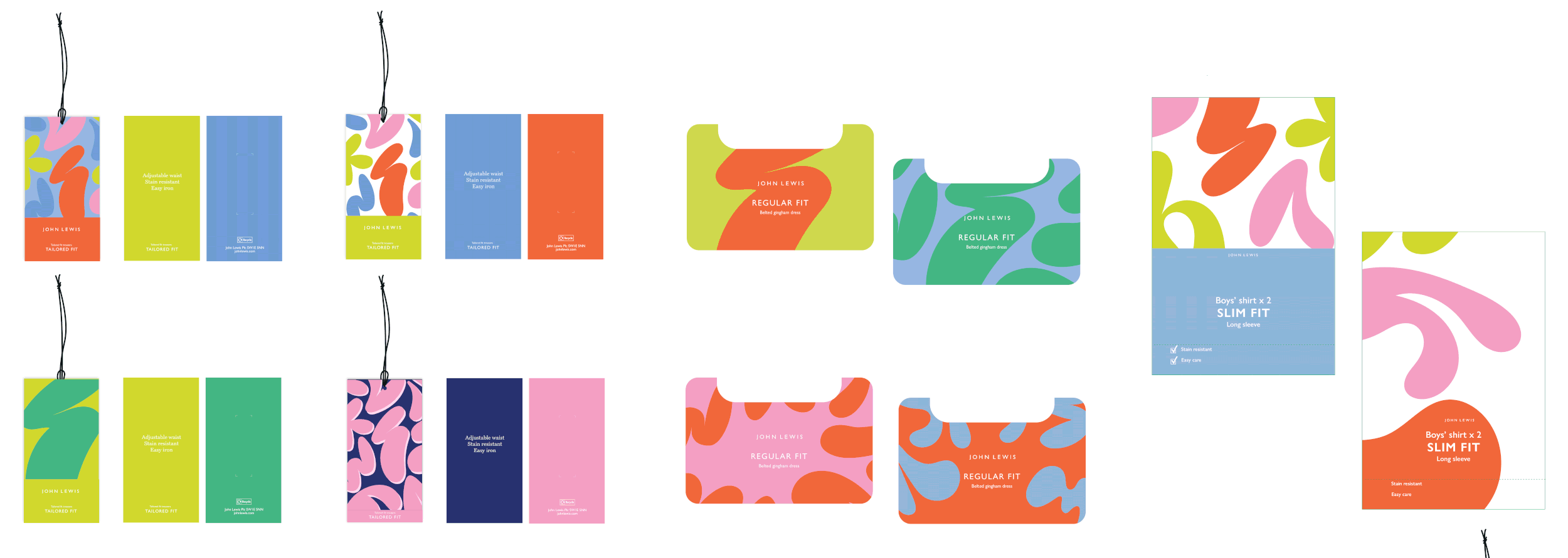 I have created packaging across a variety of formats, including collar cards, swing tickets, and polybags. With a strong focus on making core information stand out for parent shoppers. Each design balances fucntion with style - using a unisex colour palette to ensure broad appeal and a bespoke hand-illustrated pattern.